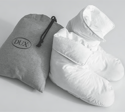 Οι πολυτελείς, ζεστές παντόφλες-μποτάκια DUX με γέμισμα από πούπουλο διατηρούν τα πόδια σας άνετα όπου και αν βρίσκεστε.