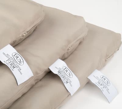 Το μαξιλάρι DUX Xleep περιέχει ένα σύστημα ενεργών μικροελατηρίων που διασφαλίζουν ότι ο αυχένας και το κεφάλι διατηρούνται ευθυγραμμισμένα με τη σπονδυλική στήλη.