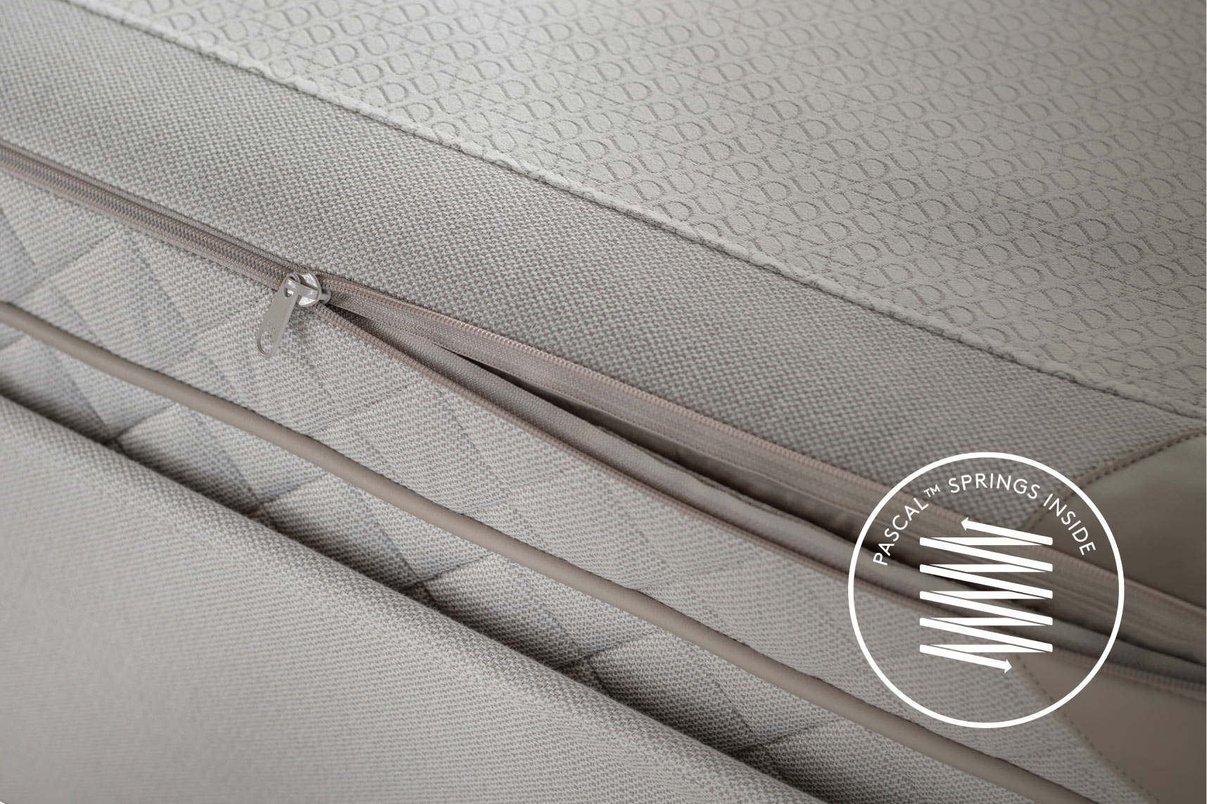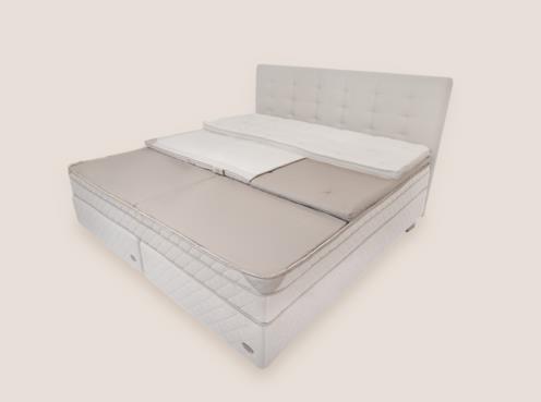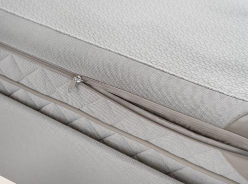Το επάνω στρώμα του κρεβατιού DUX με Pascal μπορεί να ανοίξει από το φερμουάρ για να αποκαλυφθούν έξι εναλλάξιμες κασέτες ελατηρίων, τρεις για κάθε πλευρά. Μπορείτε να προσαρμόσετε τις κασέτες ανάλογα με το μέγεθος του σώματός σας, τον σωματότυπο και τις ανάγκες σας.